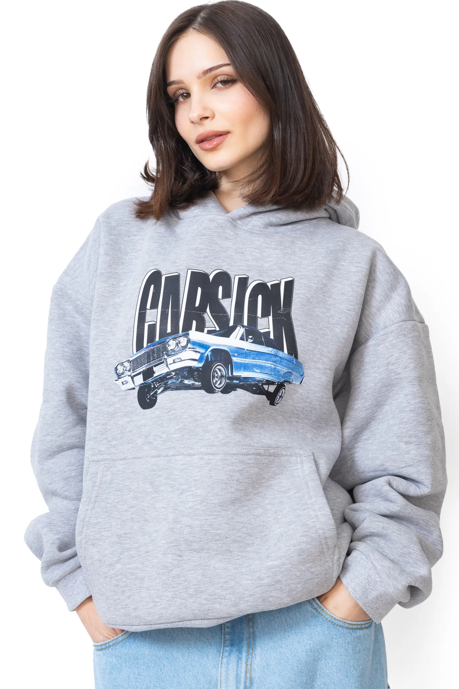 Bluza Z Kapturem Carsick IMPALA Grey to propozycja dla fanów oldschoolowych samochodów i streetwearu z charakterem. Na klatce piersiowej dominuje dynamiczny nadruk kultowego lowridera, który idealnie wpisuje się w klimat ulicznej mody. To nie tylko bluza – to manifest stylu życia inspirowanego wolnością, pasją i motoryzacją z duszą.