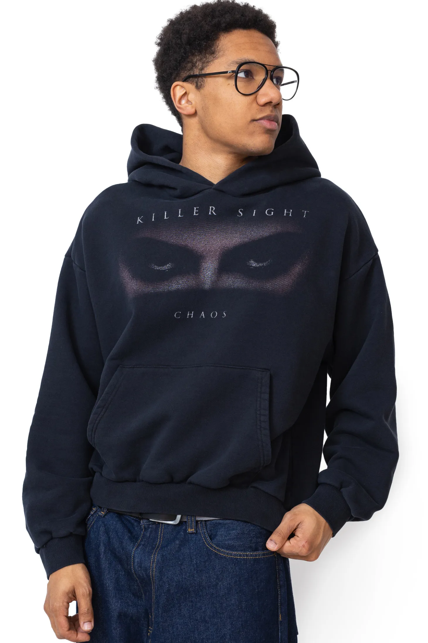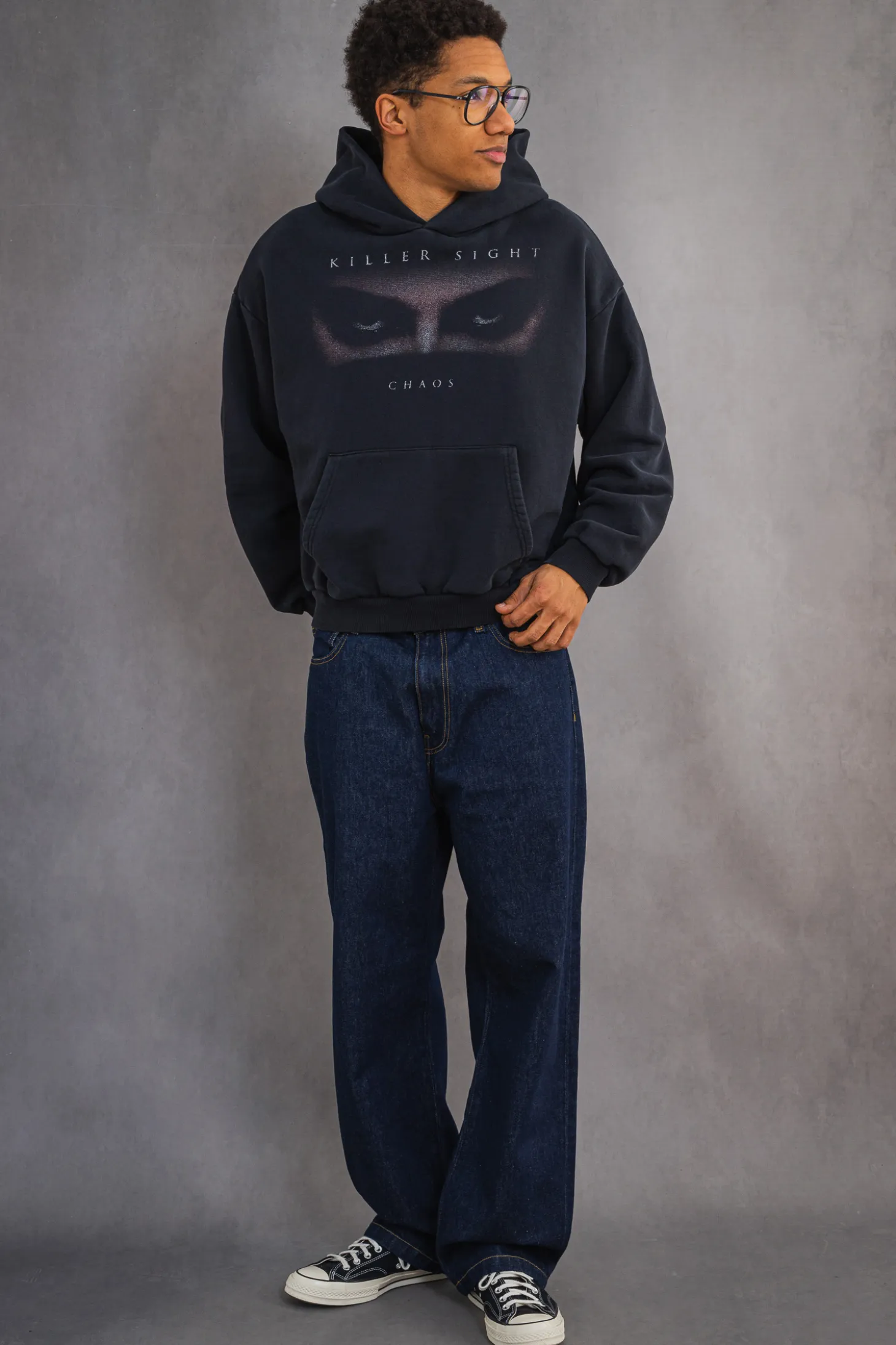 Bluza z kapturem Chaos Killer Sight Black to idealny wybór dla fanów mrocznego, tajemniczego stylu inspirowanego horrorami. Jej czarny materiał ozdobiony jest hipnotyzującą grafiką intensywnie wpatrzonych oczu oraz napisem „Killer Sight”, co nadaje jej niepokojący, ale niezwykle stylowy charakter. Wykonana z wysokiej jakości bawełny, zapewnia komfort noszenia i doskonale wpisuje się w streetwearową estetykę z nutą tajemniczości.
