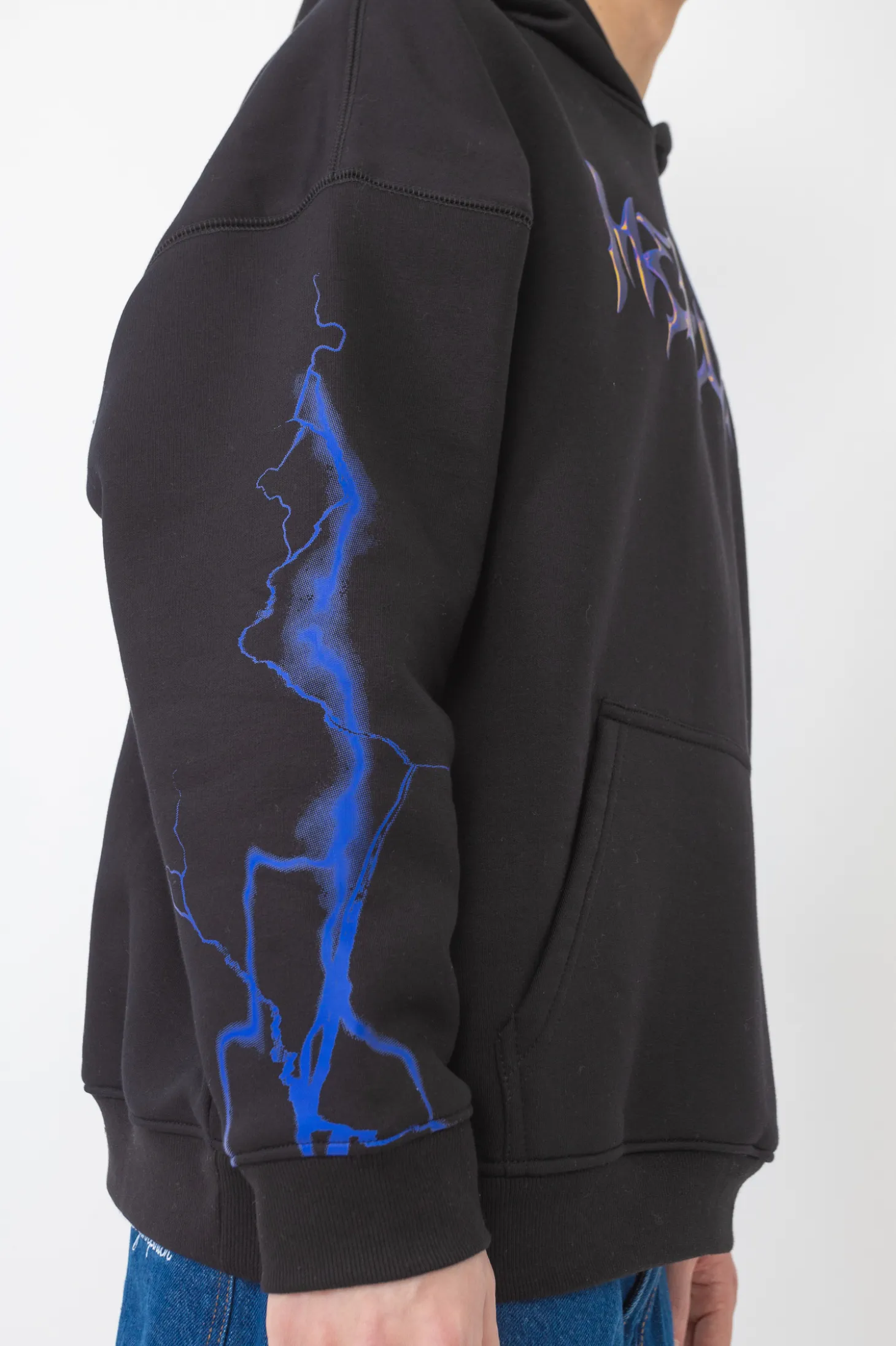- Na przodzie logo, na rękawach pioruny