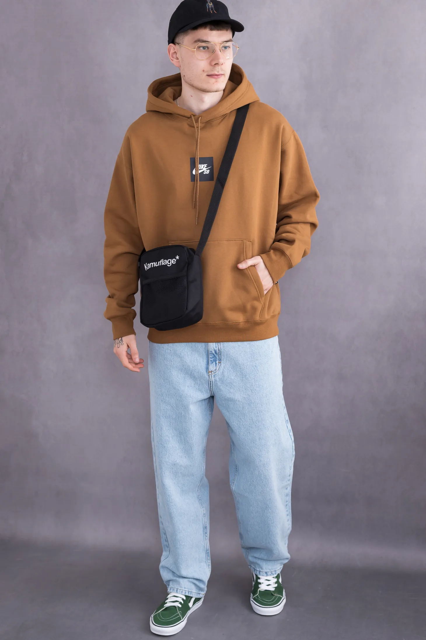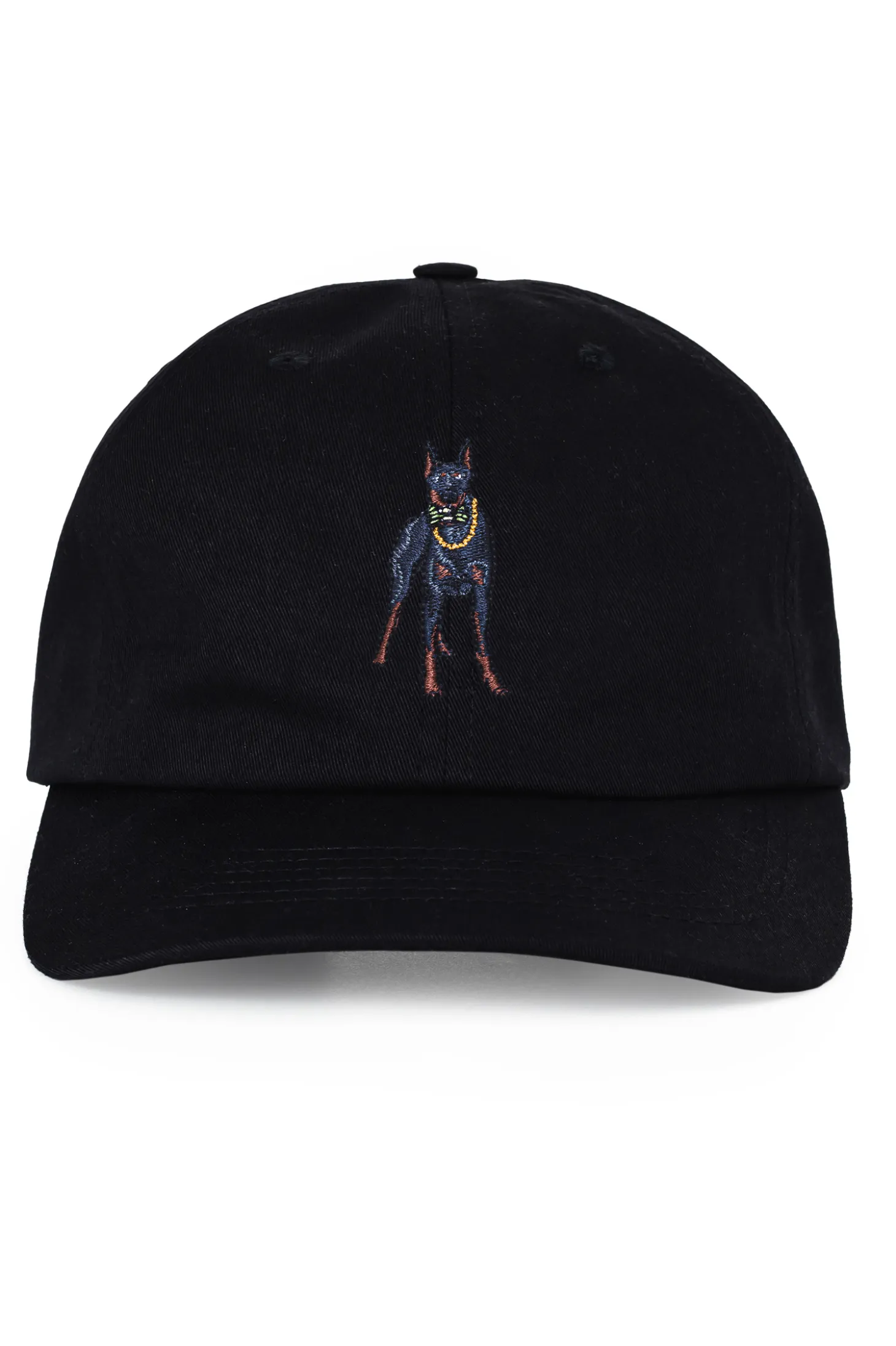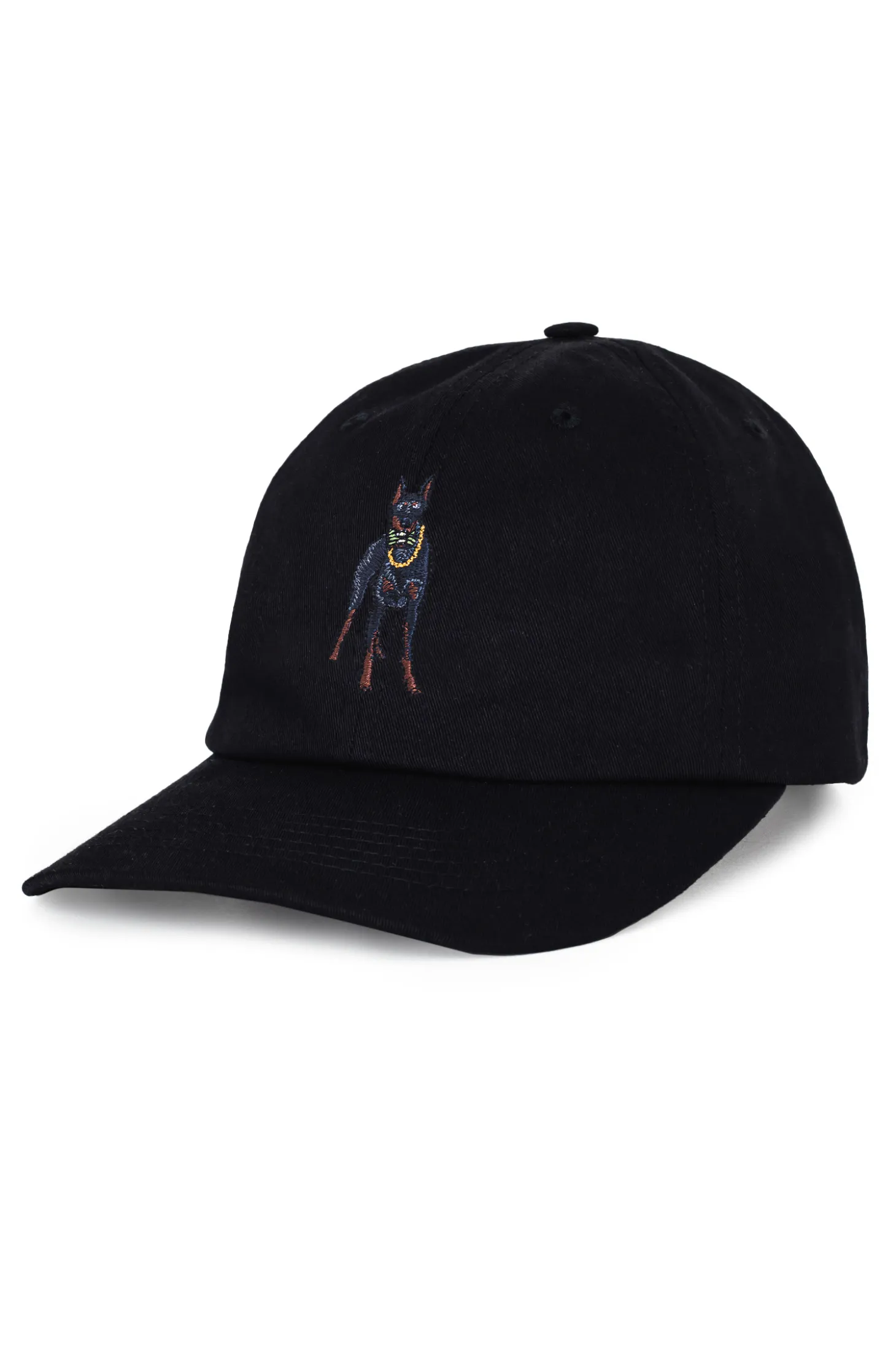 Czapka z daszkiem Kamuflage, w kolorze czarnym, z haftem na przodzie i tyle.