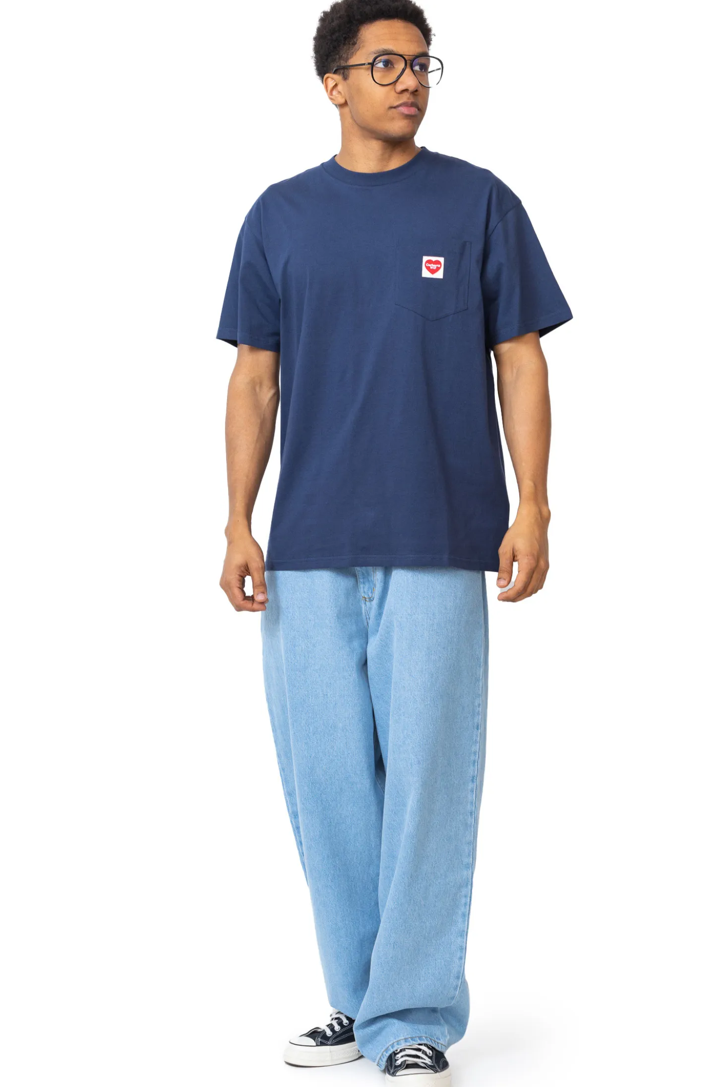 Koszulka Carhartt WIP Pocket Heart Blue I032128-01XX to minimalistyczny model w luźnym kroju, wykonany z wysokiej jakości bawełny w głębokim niebieskim kolorze. Charakterystycznym elementem jest kieszonka na piersi, ozdobiona małym logiem Carhartt w czerwonym sercu. Prosty design i solidne wykonanie sprawiają, że koszulka jest zarówno stylowa, jak i trwała – idealna do codziennego użytku.