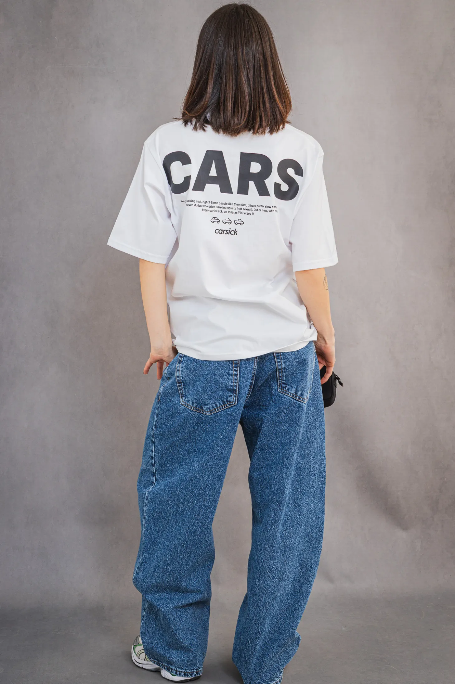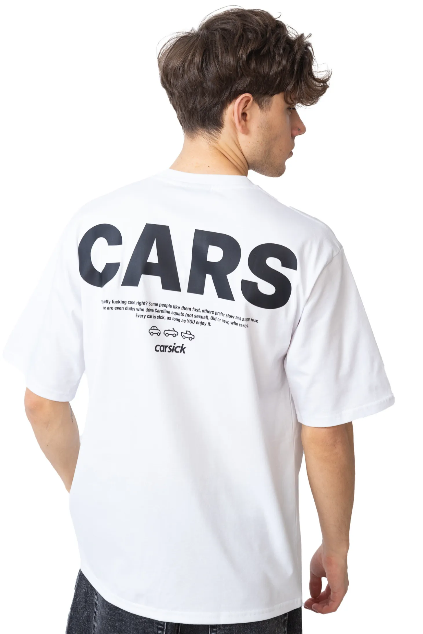 Koszulka Carsick Community White to wyrazisty manifest dla każdego, kto kocha samochody – bez względu na ich rodzaj czy styl. Z tyłu znajduje się duży nadruk „CARS” oraz tekst celebrujący różnorodność motoryzacyjnych zajawkowiczów. Biały t-shirt o luźnym kroju świetnie wpisuje się w codzienny streetwear i pozwala głośno wyrazić swoją pasję.