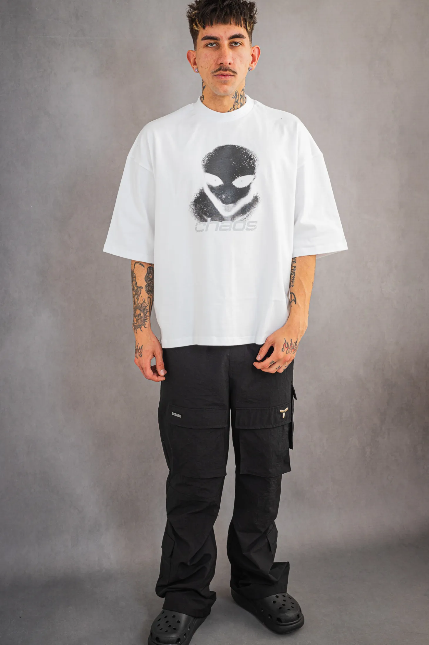 T-shirt Chaos Alien Distressed został zaprojektowany z myślą o oryginalności. Kontrastowy czarny motyw Chaos Alien na białym tle przyciąga wzrok i wyróżnia Cię z tłumu, dzięki czemu czujesz się pewnie i stylowo. Wykonana z wysokiej jakości materiałów, koszulka zapewnia długotrwałą trwałość i zachowuje swój świetny wygląd nawet po wielu praniach. To inwestycja, która będzie Ci towarzyszyć przez wiele sezonów. Chaos Alien Distressed to nie tylko zwykła koszulka, to wyrazisty element Twojej garderoby. Doskonale pasuje do jeansów, spodni czy spódnic, dodając Twoim outfitom niepowtarzalnego charakteru.