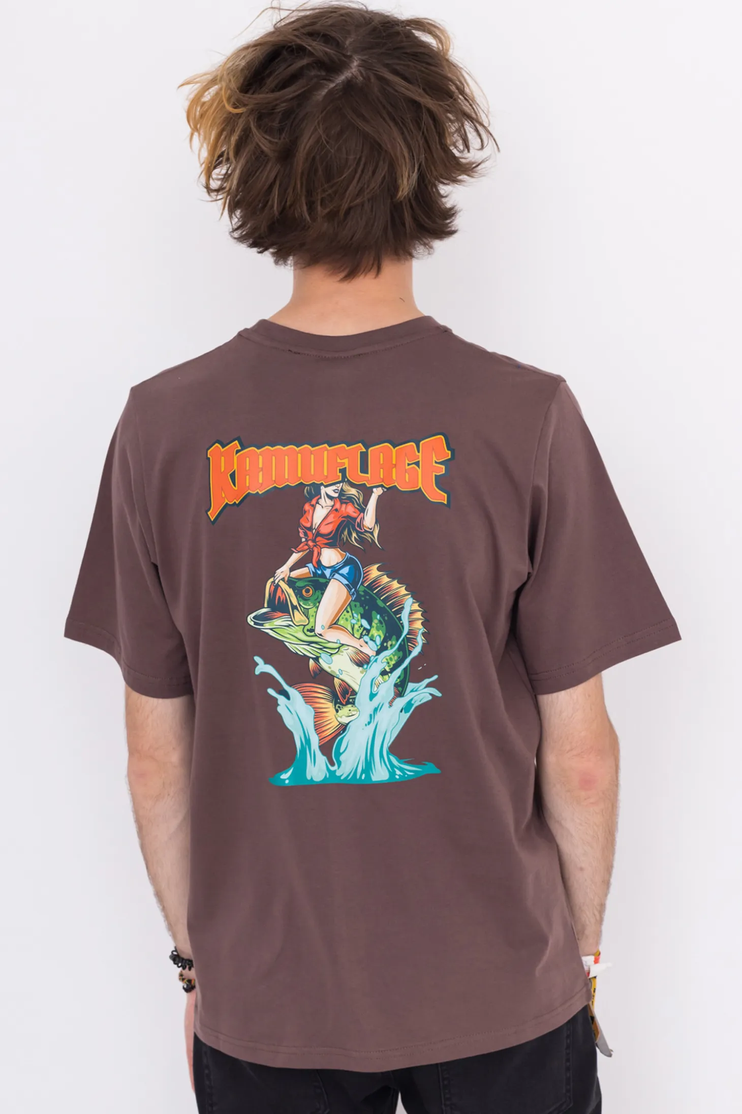 Koszulka Kamuflage, w kolorze brązowym, z nadrukiem na przodzie.