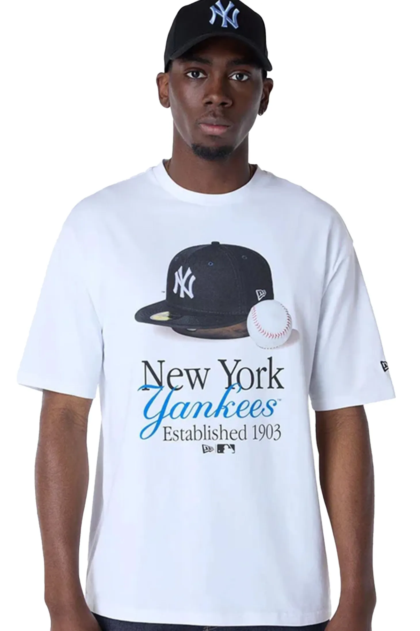 Koszulka New Era New York Yankees MLB Script White 60596279 to klasyczna propozycja dla fanów baseballu, ozdobiona grafiką czapki z daszkiem, piłki oraz napisem nawiązującym do klubu New York Yankees. Wykonana z miękkiej bawełny, łączy sportowy styl z miejską elegancją, dzięki czemu jest idealna na co dzień i na stadion.