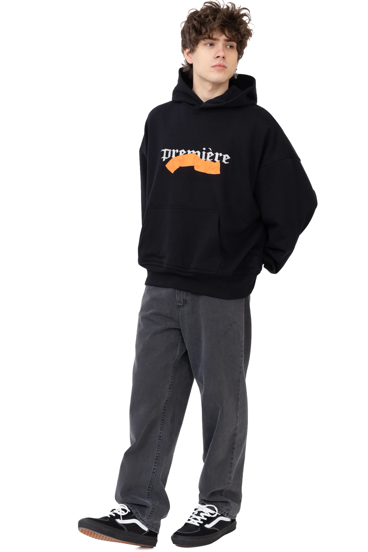 - Trwale przyklejona taśma i haftowany napis z przodu bluzy.