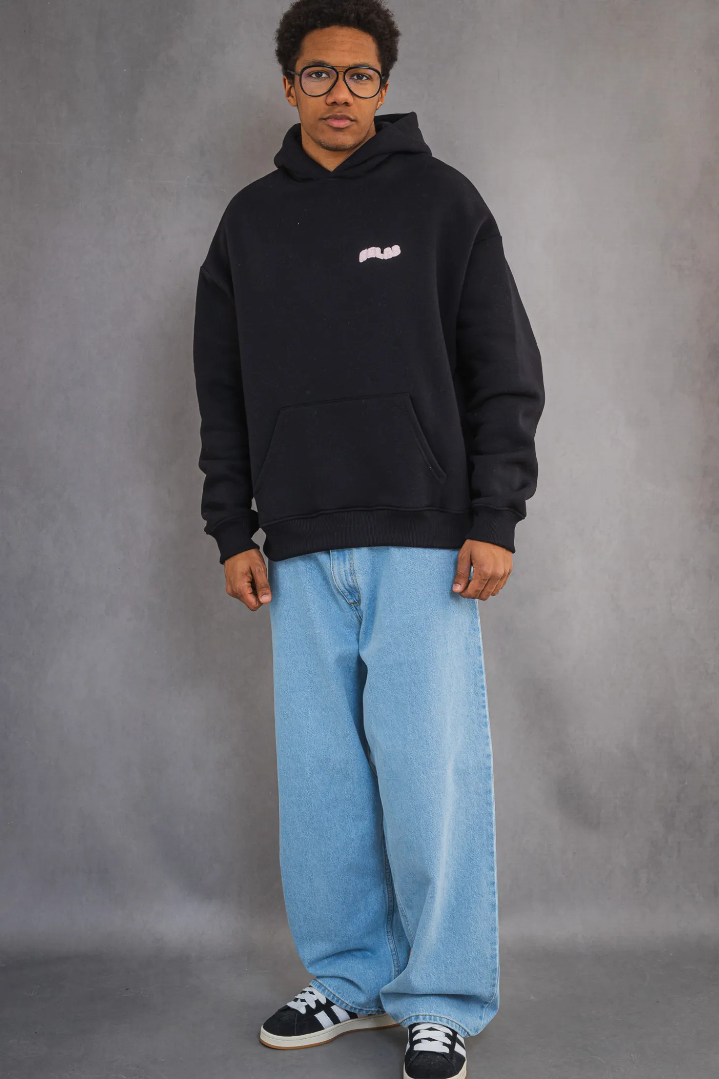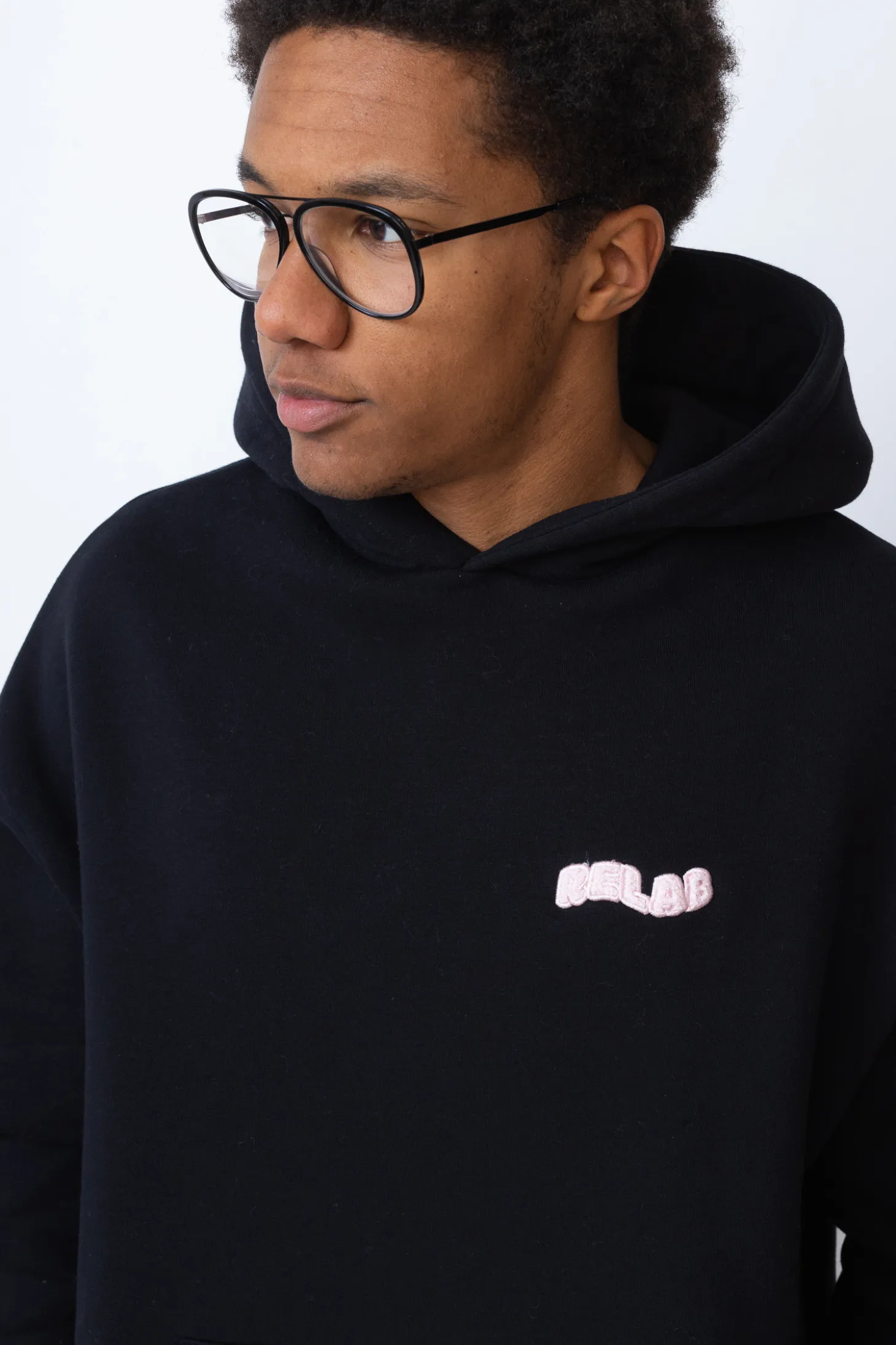 Bluza Relab z kapturem w kolorze czarnym z różowym haftem.