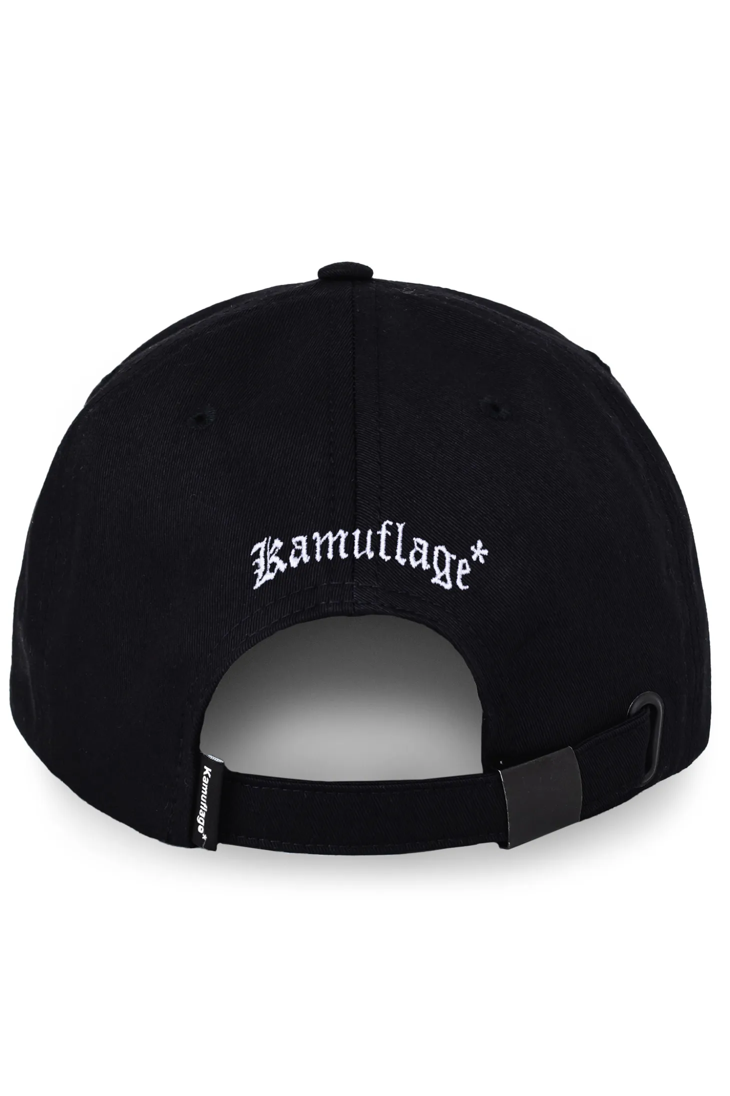 Czapka z daszkiem Kamuflage, w kolorze czarnym, z haftem na przodzie i tyle.