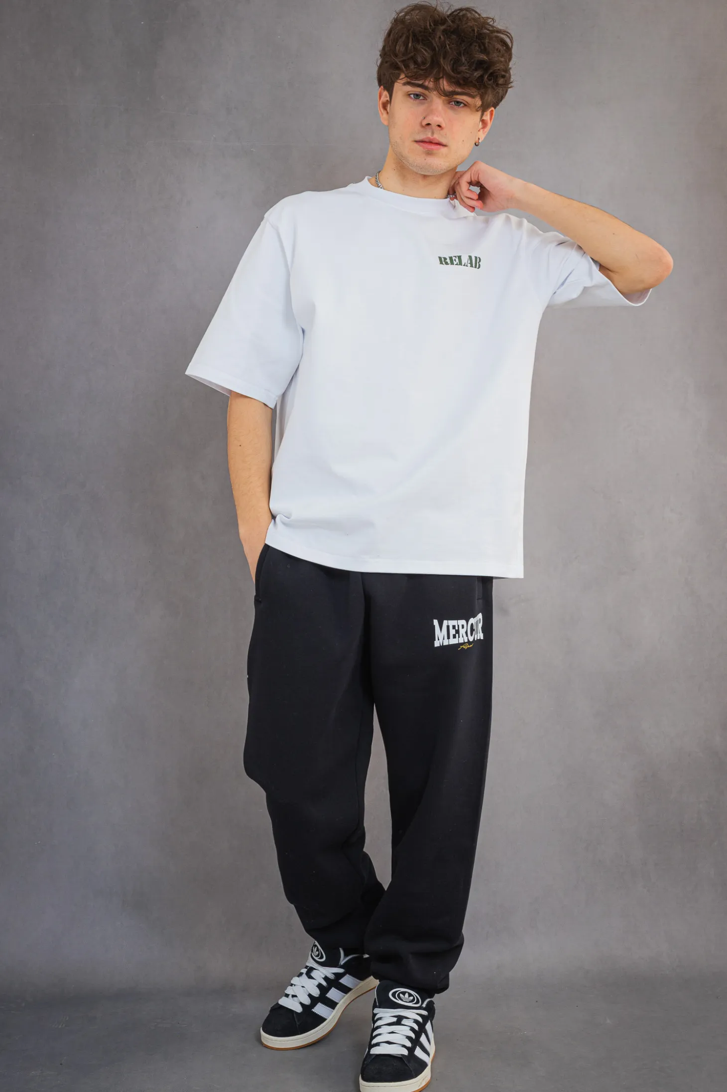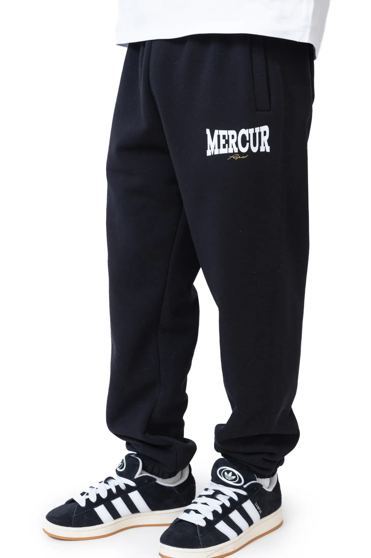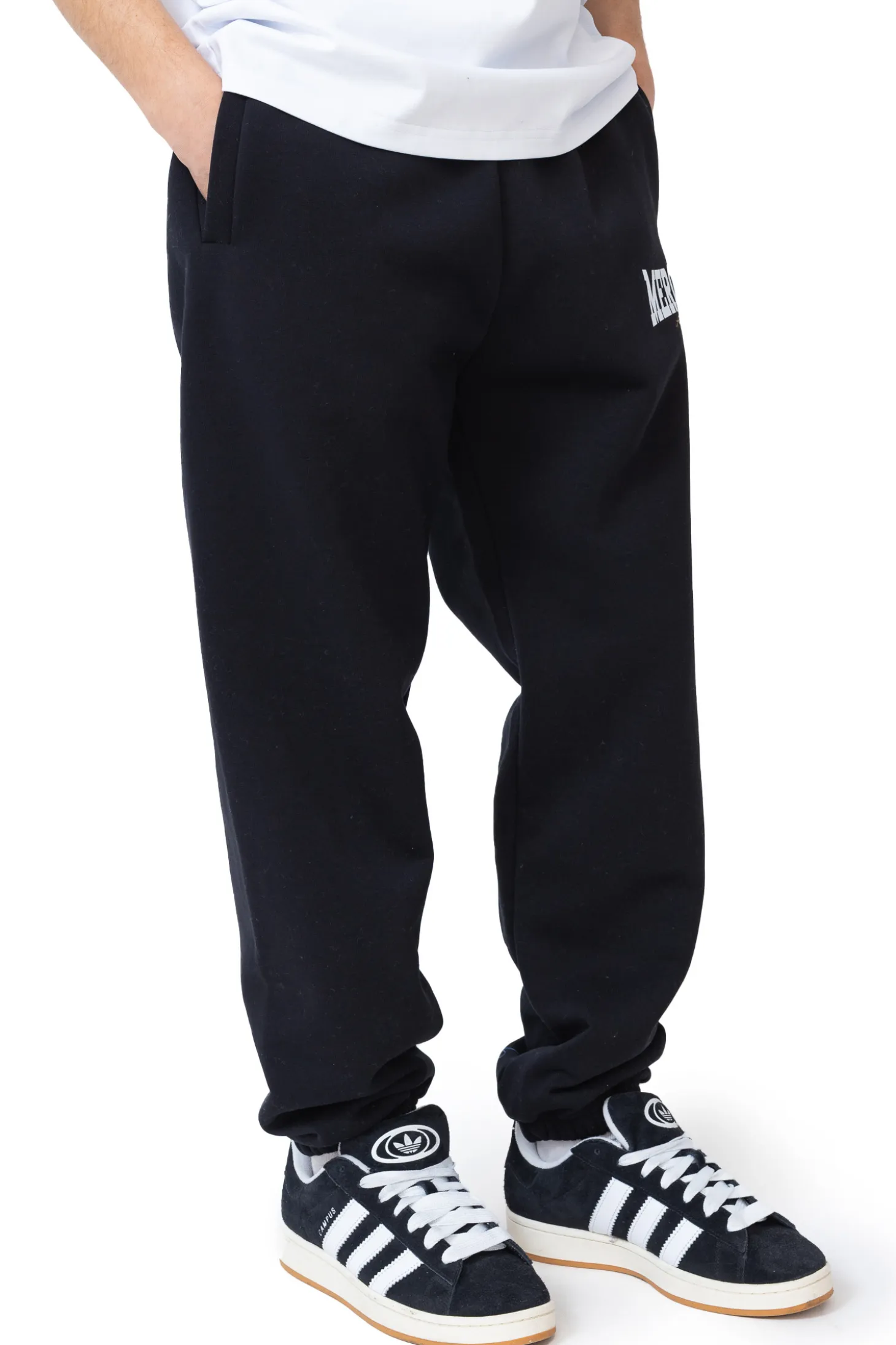 Spodnie dresowe Mercur Box Black to klasyczny model inspirowany streetwearowym stylem, łączący wygodę z minimalistycznym designem. Czarny kolor, elastyczny pas i ściągacze przy nogawkach zapewniają idealne dopasowanie oraz swobodę ruchów. Charakterystyczne logo Mercur na nogawce nadaje im unikalnego charakteru.