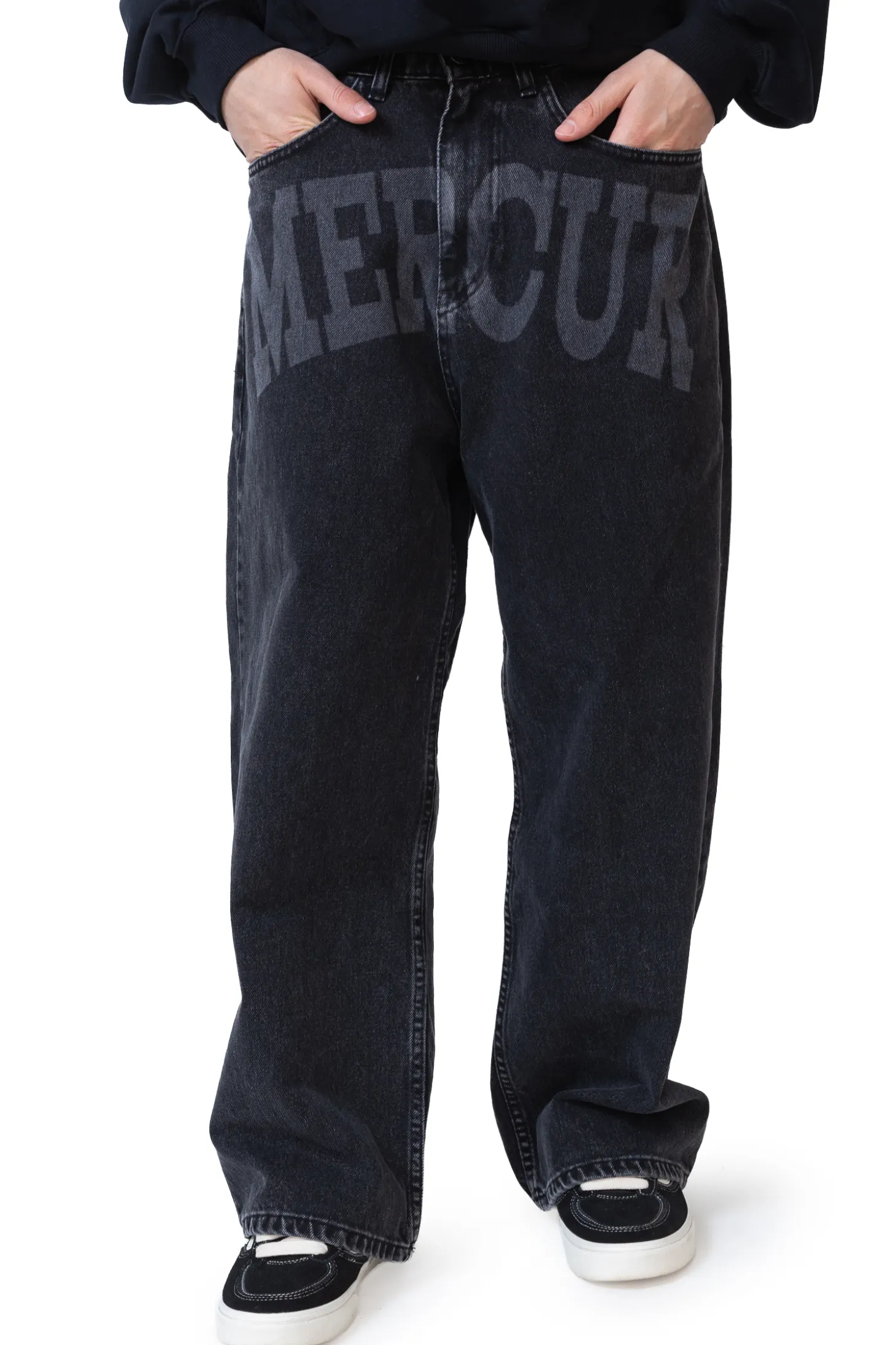 Spodnie Mercur Loose Box Black to idealne rozwiązanie dla tych, którzy cenią sobie luźny, niezobowiązujący styl z nutą buntu. Charakterystyczne, kontrastowe logo na froncie nadaje im wyjątkowego charakteru i sprawi, że wyróżnisz się w każdej miejskiej stylówce.