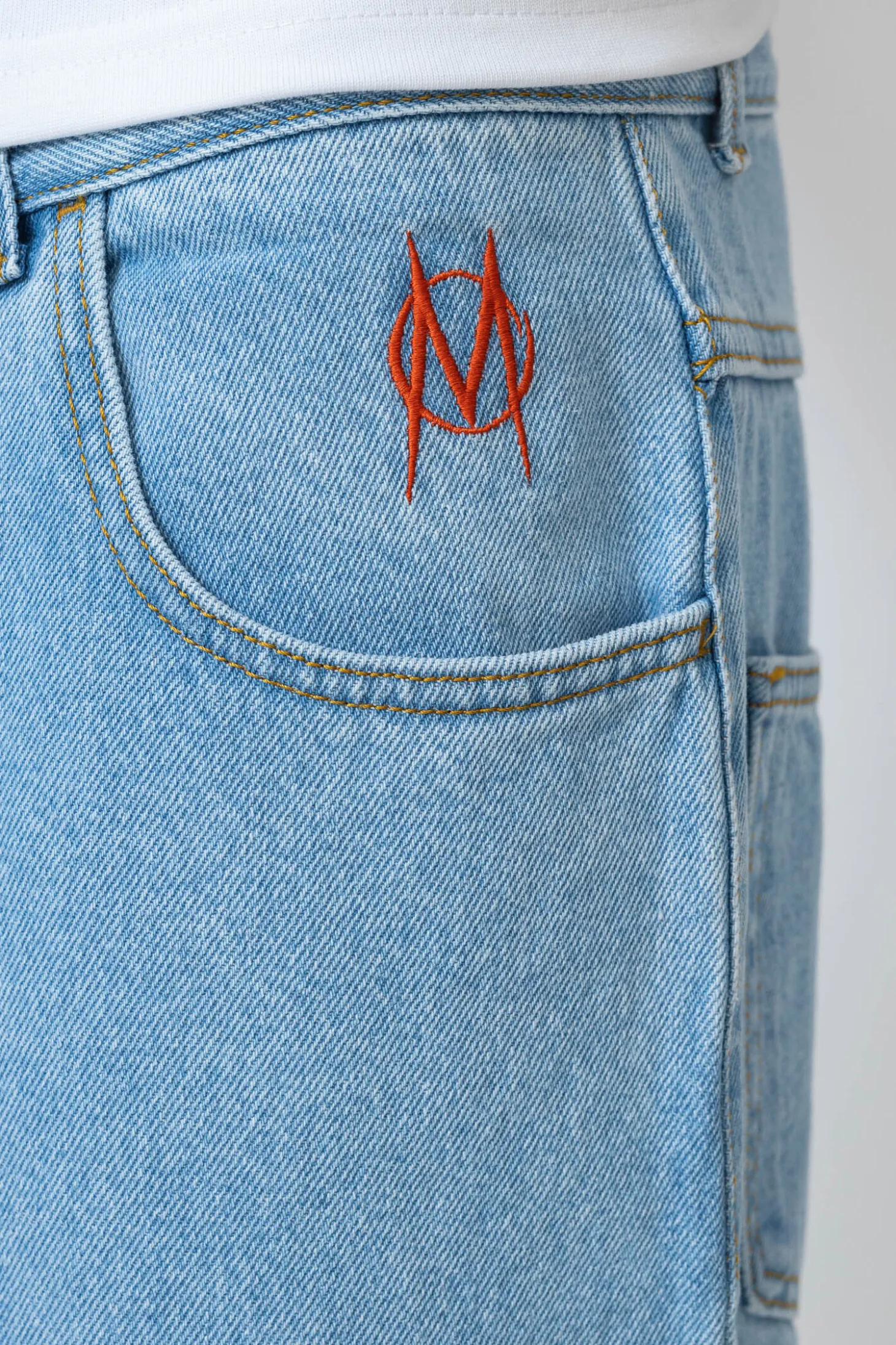 - Haft na przodzie oraz tyle spodni
