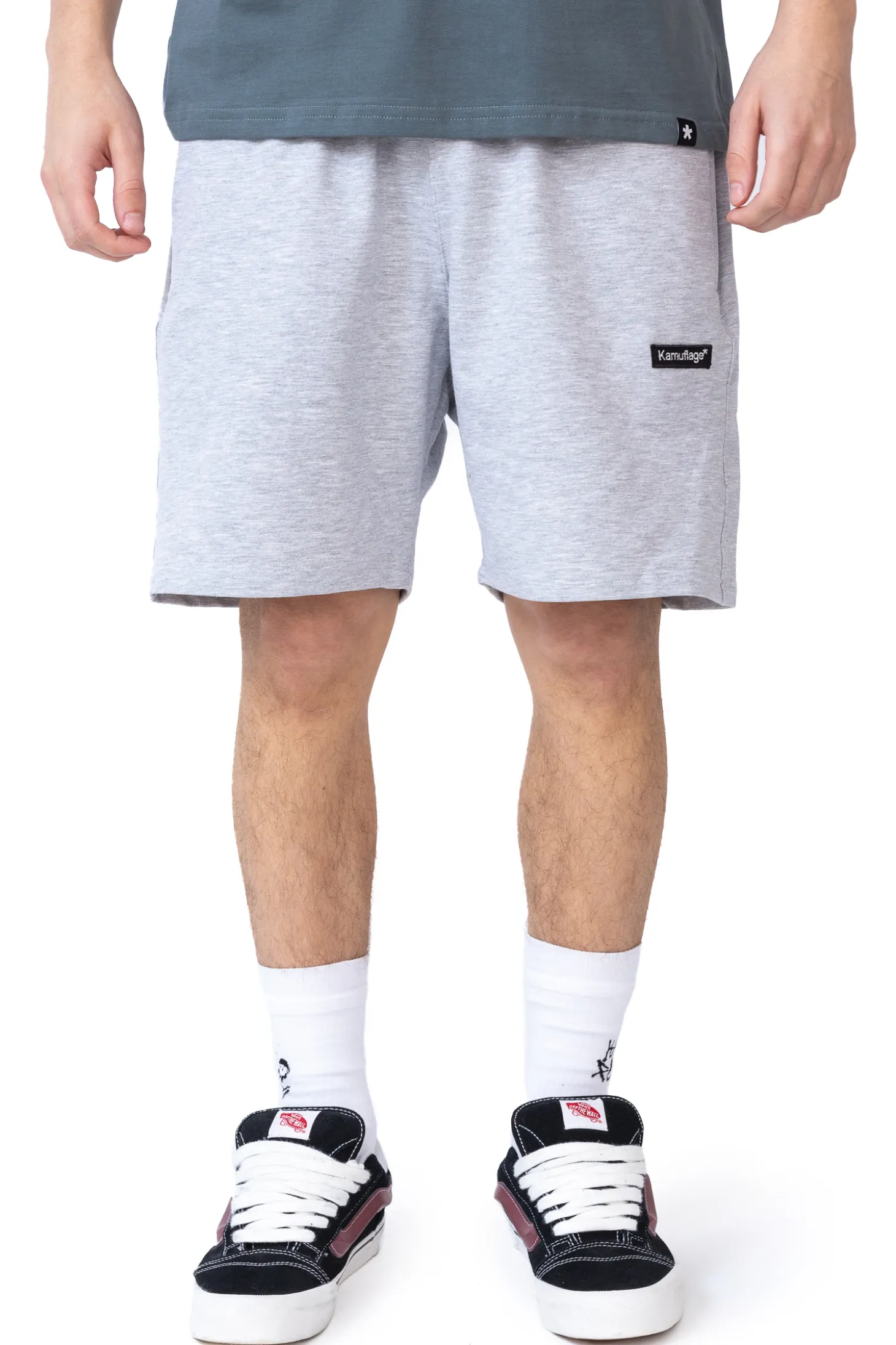 Spodenki dresowe Kamuflage Minilogo w kolorze szarym, z małą naszywką na nogawce. Szorty materiałowe są przyjemne w dotyku oraz idealnie sprawdzą się w ciepłe dni.