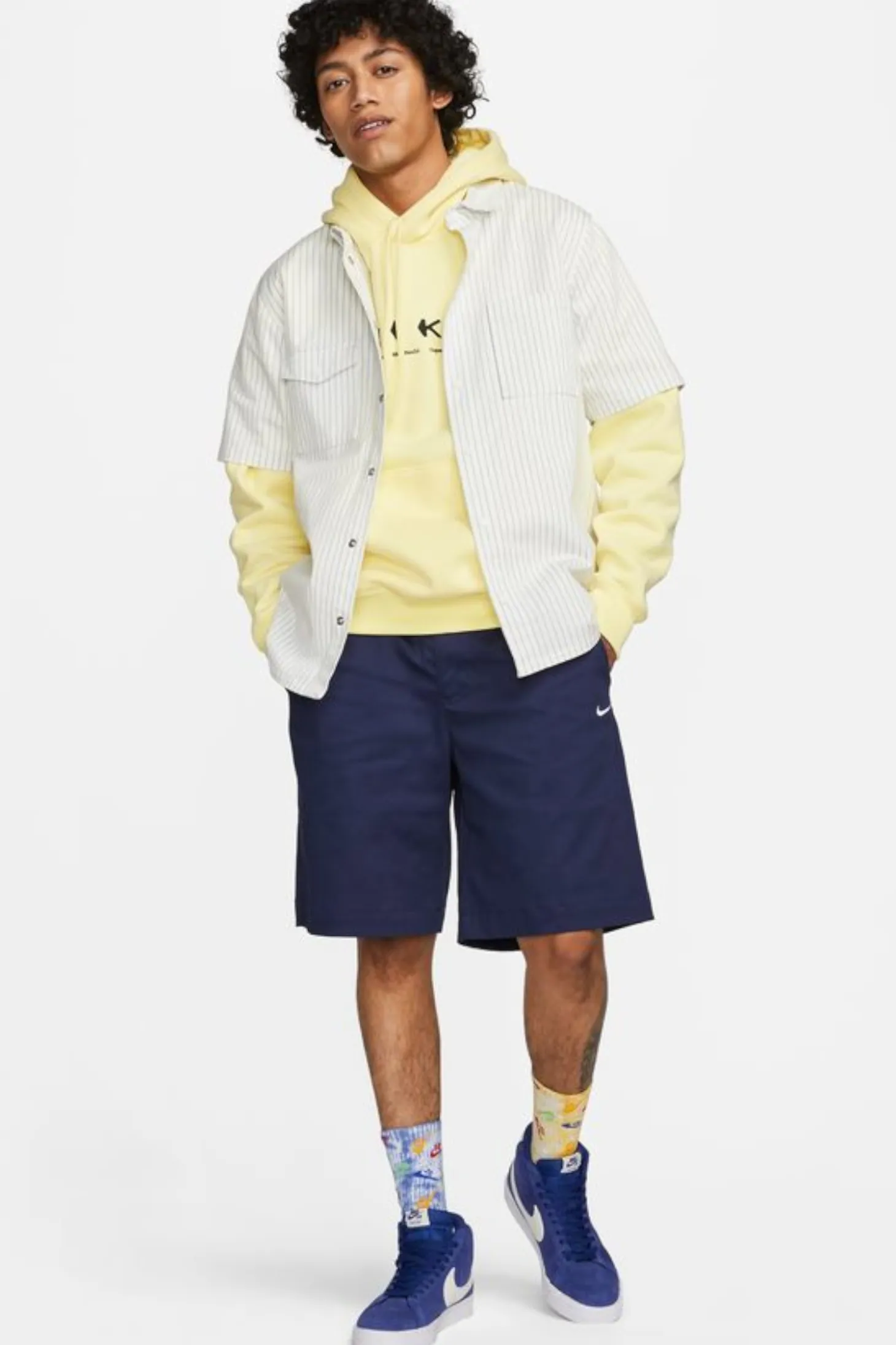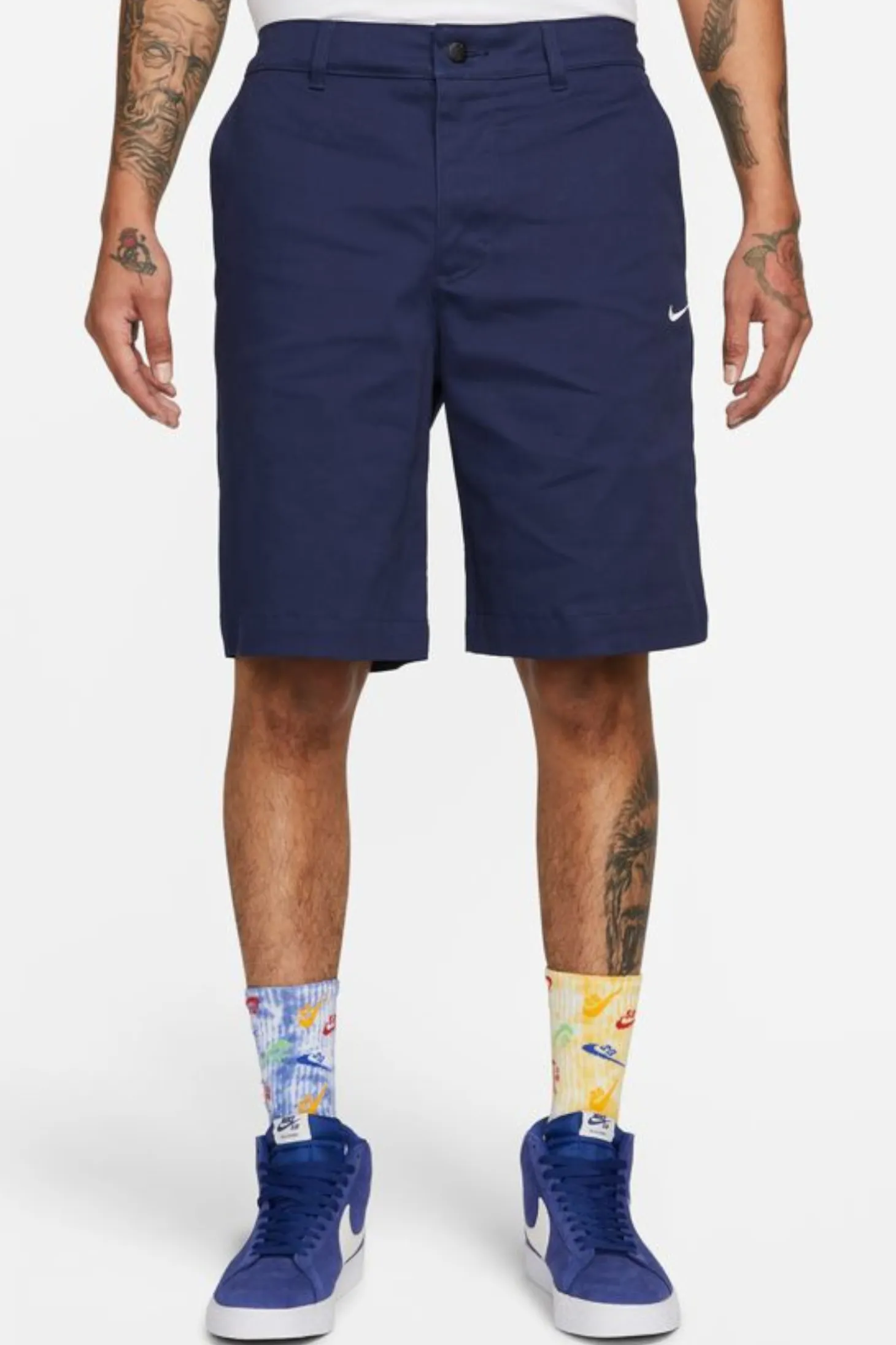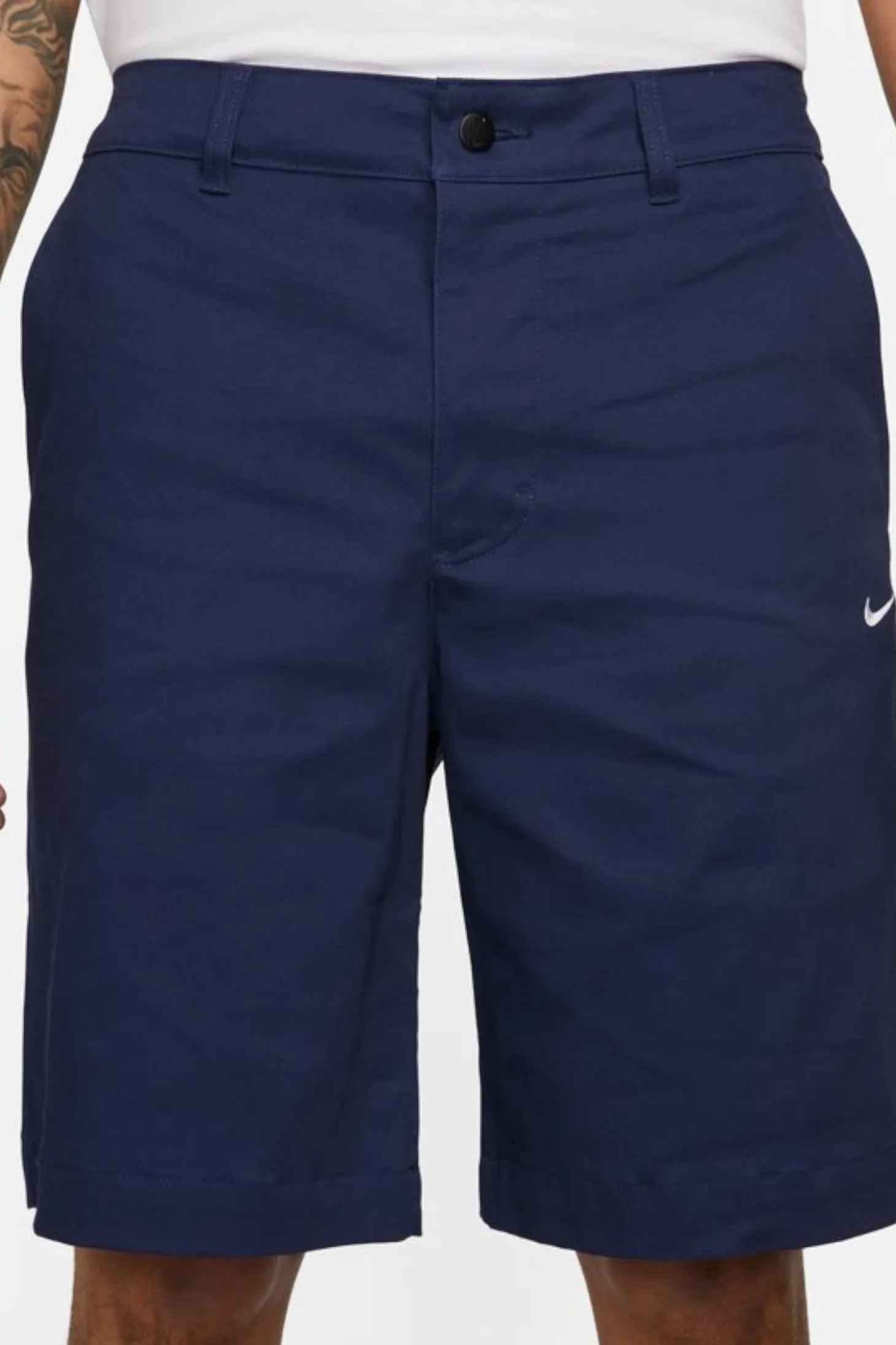 Szorty Nike Dri-FIT zapinane na guzik w kolorze niebieskim z małym haftem na przodzie.